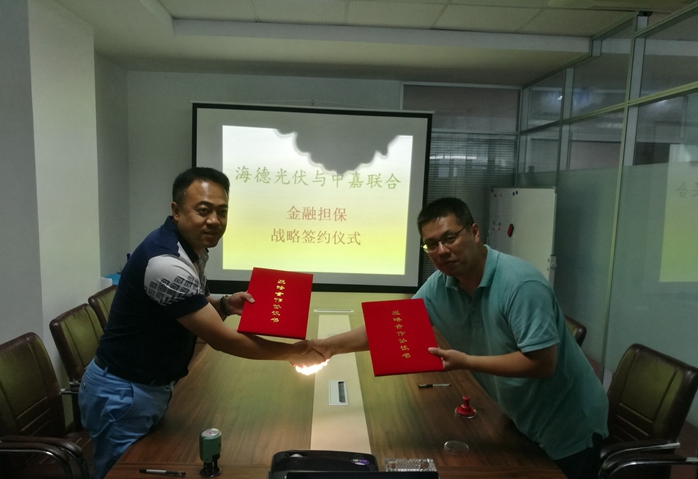 During the period of cooperation,after assessment and approval, Zhongjia will provide guaranty for the personal customers with financing demand recommended by Shandong Hyde, and assist in the application for loans from the bank.The signing of cooperation agreement will offer convenience and assurance to our customers with strong desire of installation of solar plant, but having financial difficulties.