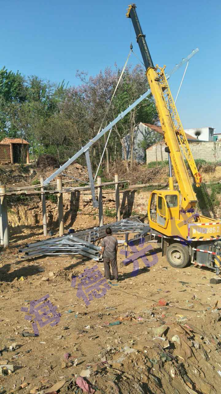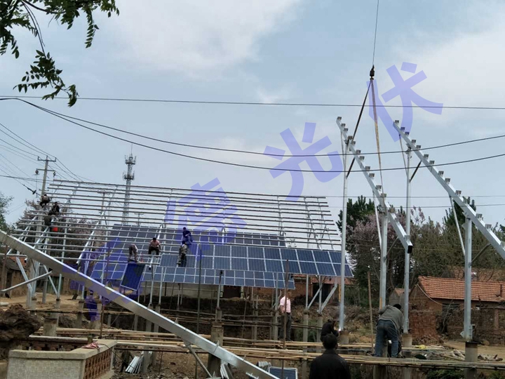 樁體固定好后,碳素鋼支架開始入場組裝。支架直接焊接固定在高度達(dá)到4米的樁體上。