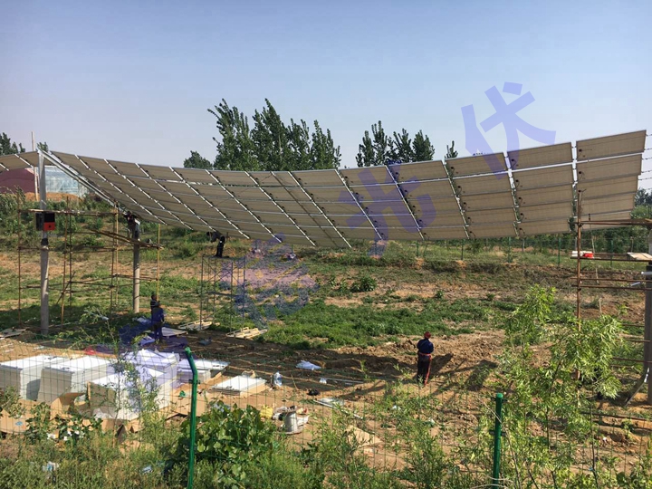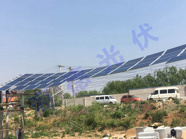 遠(yuǎn)遠(yuǎn)望去,整套光伏電池板就像飄在空中一樣,令人嘆為觀止。