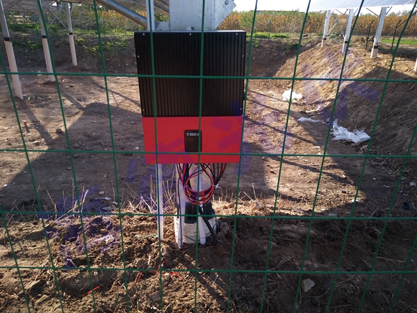 圍欄將工程所有設(shè)施配件與外隔離開(kāi)來(lái),防止人為破壞和損壞以及其他事故的發(fā)生。逆變器固定在樁體與立柱上,線纜排列緊湊而規(guī)整。所有細(xì)節(jié)要求嚴(yán)謹(jǐn)而規(guī)范。