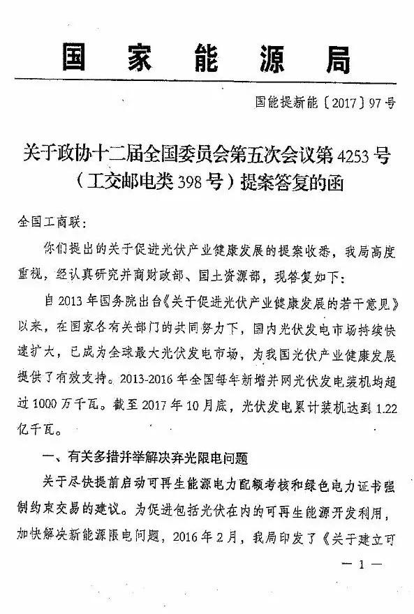 近日,國(guó)家能源局發(fā)布了《關(guān)于政協(xié)十二屆全國(guó)委員會(huì)第五次會(huì)議第4253號(hào)(工交郵電類398號(hào))提案答復(fù)的函》,文件針對(duì)全國(guó)工商聯(lián)提出的“關(guān)于促進(jìn)光伏產(chǎn)業(yè)健康發(fā)展的提案”做出答復(fù),并提出了一系列鼓勵(lì)光伏產(chǎn)業(yè)發(fā)展的措施。