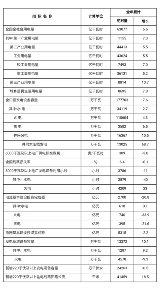 注:全社會用電量指標(biāo)是全口徑數(shù)據(jù),電源、電網(wǎng)基本建設(shè)投資為納入行業(yè)統(tǒng)計(jì)的大型電力企業(yè)完成數(shù)。