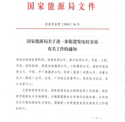 為穩(wěn)妥有序的推進電力市場建設,大幅度提高電力市場化交易比重,近日,國家能源局下發(fā)了關于進一步促進發(fā)電權交易有關工作的通知,其主要內(nèi)容包括以下幾個方面: