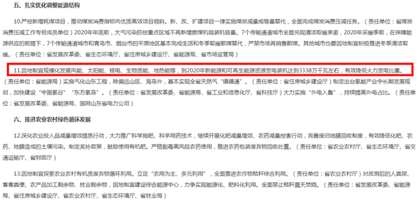 近日,山東省人民政府官網(wǎng)發(fā)布《關(guān)于統(tǒng)籌推進(jìn)生態(tài)環(huán)境保護(hù)與經(jīng)濟(jì)高質(zhì)量發(fā)展的意見 》(魯政字〔2019212號(hào) )一文,其中指出要扎實(shí)優(yōu)化調(diào)整能源結(jié)構(gòu),嚴(yán)控新增耗煤項(xiàng)目,推動(dòng)煤炭消費(fèi)指標(biāo)向優(yōu)質(zhì)高效項(xiàng)目傾斜。新、改、擴(kuò)建項(xiàng)目一律實(shí)施煤炭減量或等量替代,全面完成煤炭消費(fèi)壓減任務(wù)。因地制宜規(guī)?;l(fā)展風(fēng)能、太陽能、核電、生物質(zhì)能、地?zé)崮艿刃履茉?,?/span>2020年新能源和可再生能源資源發(fā)電裝機(jī)達(dá)到3338萬千瓦左右,有效降低火力發(fā)電比重。