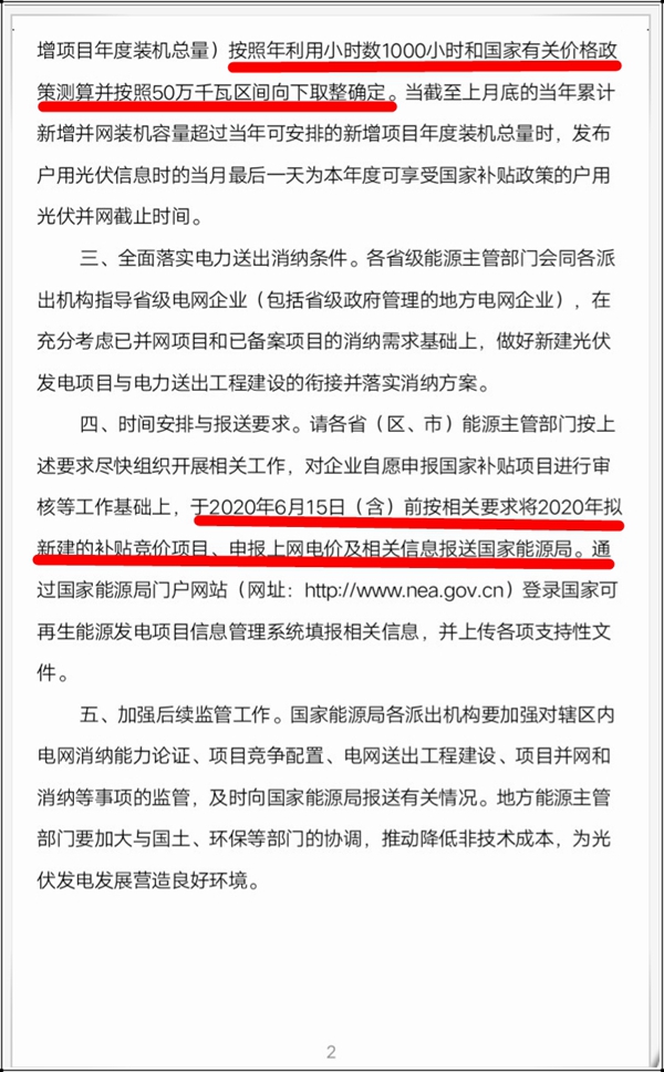 一、省級能源主管部門要根據(jù)國家可再生能源發(fā)展“十三五”相關(guān)規(guī)劃和本地區(qū)電網(wǎng)消納能力,按照2020年風(fēng)電和光伏發(fā)電項目建設(shè)工作方案要求,規(guī)范有序組織項目建設(shè);嚴格落實監(jiān)測預(yù)警要求,以電網(wǎng)消納能力為依據(jù)合理安排新增核準(zhǔn)(備案)項目規(guī)模;按月組織風(fēng)電、光伏發(fā)電企業(yè)在國家可再生能源發(fā)電項目信息管理平臺填報、更新核準(zhǔn)(備案)、開工、在建、并網(wǎng)等項目信息;加大與國土、環(huán)保等部門的協(xié)調(diào),推動降低非技術(shù)成本,為風(fēng)電、光伏發(fā)電建設(shè)投資營造良好環(huán)境。