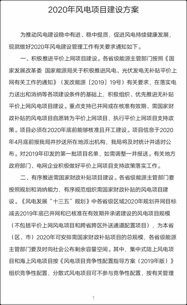 近日,國家能源局等相關(guān)部門發(fā)布通知,對2020年的風(fēng)電及光伏發(fā)電項目建設(shè)事宜作出說明,主要內(nèi)容如下: