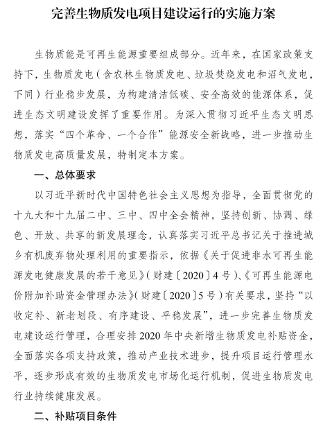 《完善生物質(zhì)發(fā)電項(xiàng)目建設(shè)運(yùn)行的實(shí)施方案》通知下發(fā)
