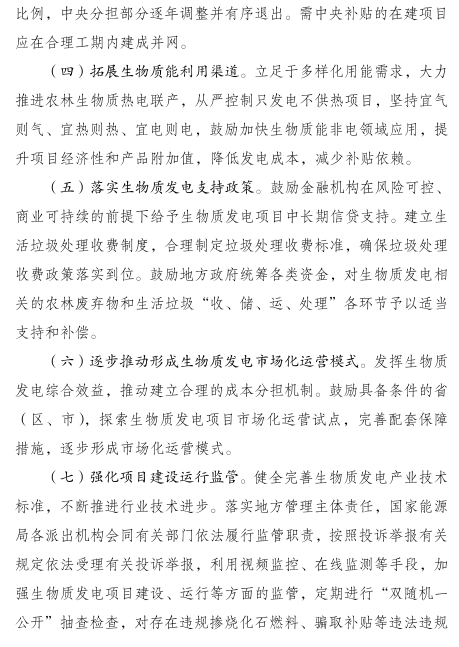近日,國(guó)家能源局、國(guó)家發(fā)改委等部門(mén)下發(fā)了《完善生物質(zhì)發(fā)電項(xiàng)目建設(shè)運(yùn)行的實(shí)施方案》的通知,具體內(nèi)容如下:
