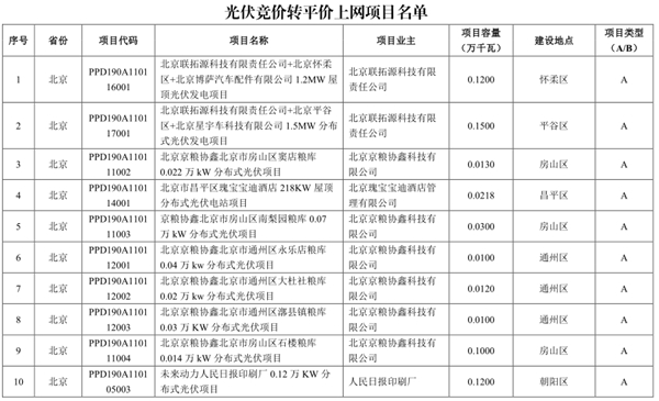 全國各省份光伏競價轉(zhuǎn)平價上網(wǎng)項目統(tǒng)計如下: