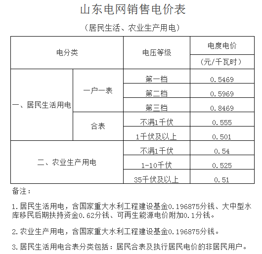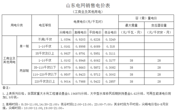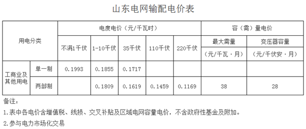附件:山東電網(wǎng)銷售電價(jià)表、輸配電價(jià)表