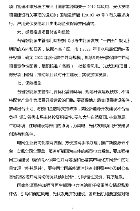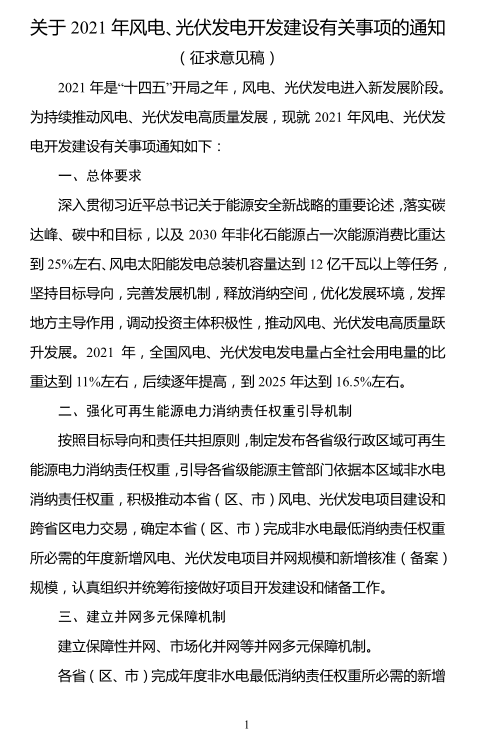 為做好2021年度風(fēng)電、光伏發(fā)電開(kāi)發(fā)建設(shè)管理工作,持續(xù)推動(dòng)光伏發(fā)電、風(fēng)電高質(zhì)量發(fā)展,國(guó)家能源局近日發(fā)布了《關(guān)于2021年光伏發(fā)電、風(fēng)電開(kāi)發(fā)建設(shè)有關(guān)事項(xiàng)的通知》,原文如下: