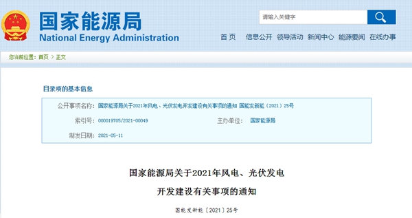 2021年是“十四五”開(kāi)局之年,風(fēng)電、光伏發(fā)電進(jìn)入新發(fā)展階段。為持續(xù)推動(dòng)風(fēng)電、光伏發(fā)電高質(zhì)量發(fā)展,現(xiàn)就2021年風(fēng)電、光伏發(fā)電開(kāi)發(fā)建設(shè)有關(guān)事項(xiàng)通知如下: