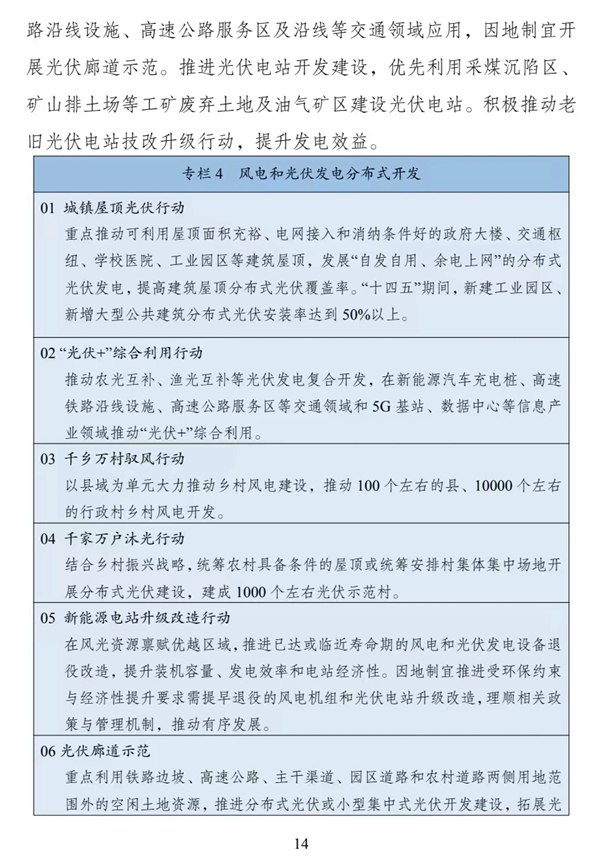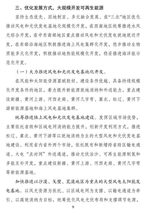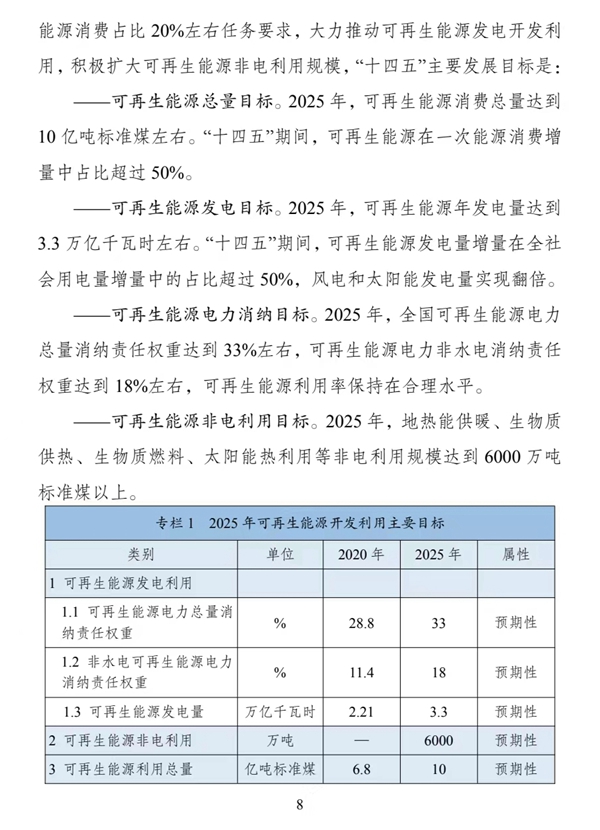 《規(guī)劃》中明確,十四五期間,可再生能源發(fā)電量增量在全社會(huì)用電量增量中的占比超過(guò)50%,風(fēng)電和太陽(yáng)能發(fā)電量實(shí)現(xiàn)翻倍;大力推進(jìn)光伏發(fā)電和風(fēng)電基地化開發(fā),積極推進(jìn)光伏發(fā)電和風(fēng)力發(fā)電分布式開發(fā)等。主要內(nèi)容如下:
