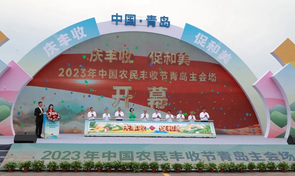 9月23日,秋分時節(jié),2023年中國農(nóng)民豐收節(jié)青島主會場活動在城陽區(qū)惜福鎮(zhèn)青峰村初心廣場舉行。全國農(nóng)技推廣中心黨委副書記徐樹仁,青島市委副書記、統(tǒng)戰(zhàn)部部長張惠,市人大常委會副主任李紅兵,副市長宋明杰,市政協(xié)副主席陳大維等領(lǐng)導(dǎo)出席活動現(xiàn)場。