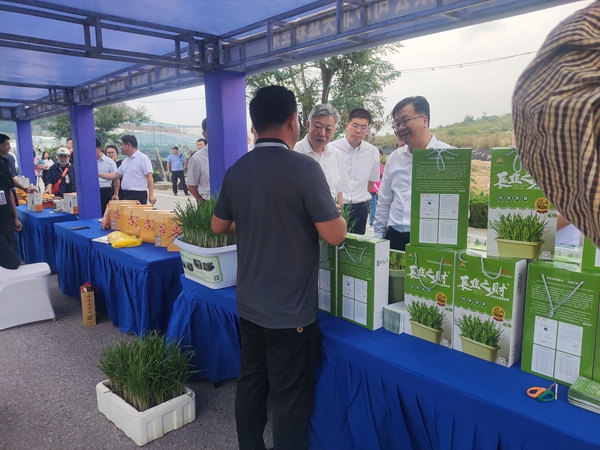 與此同時,平度主會場活動暨農(nóng)產(chǎn)品展銷會也在平度市大澤山鎮(zhèn)“印象大澤”廣場隆重舉行,山東省農(nóng)業(yè)農(nóng)村廳二級巡視員王瑞華,青島市鄉(xiāng)村振興局副局長宋曉,平度市委副書記、市長張宏業(yè)等各級相關(guān)領(lǐng)導(dǎo)蒞臨現(xiàn)場。我集團(tuán)農(nóng)業(yè)公司培育種植的沙北頭盆栽韭菜受邀參展。