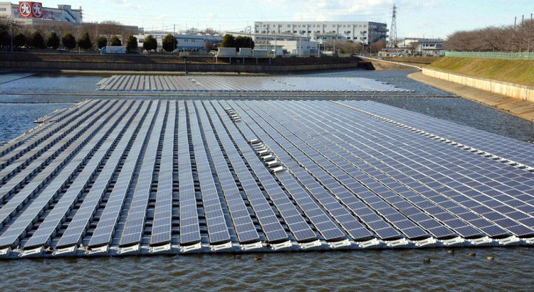 太陽能電池板覆蓋在水面上,可減少水面蒸發(fā)量,抑制水中藻類繁殖,有利于水資源的保護;